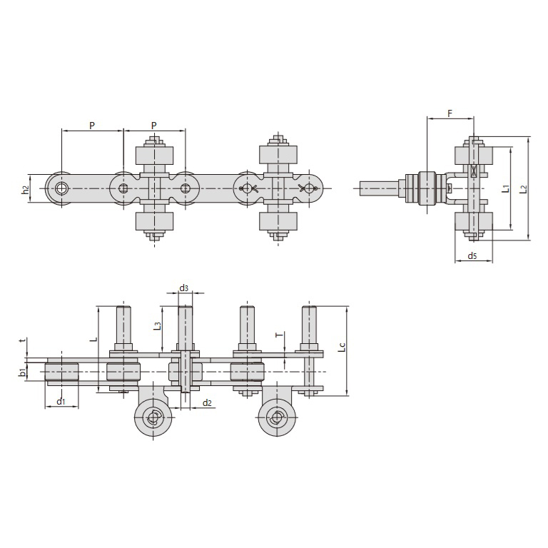 - Besteht aus Kettenplatten, Bolzen, Gelenkblock-Kreuzgelenken und Rollenbaugruppen (Rollen, Lager, Bolzen) und bietet Flexibilität, Langlebigkeit und hohe Effizienz.