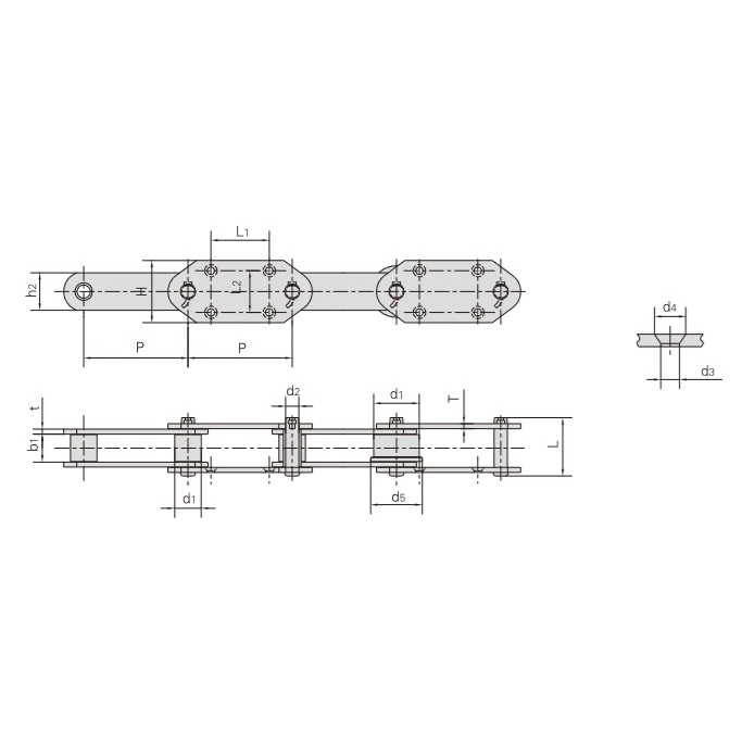 - Hohe Stabilität:Jedes Lager besteht aus einem Bolzen und einer Hülse, wodurch sich die Rollen reibungslos drehen können. Durch die Gelenkkonstruktion kann die Kette hohem Druck und Stößen standhalten und sorgt für Stabilität und zuverlässigen Transport.