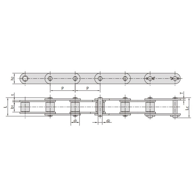 - Verstärkte Hülsen zwischen den Kettenplatten ermöglichen bei Bedarf eine Überschreitung der Nennhöhe, wobei der Abstand für einen sicheren und ordnungsgemäßen Betrieb erhalten bleibt.