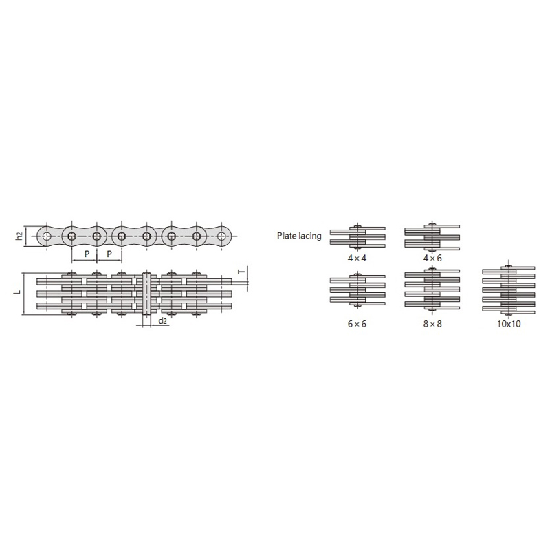 Die Plattenkette für Gabelstapler ist eine spezielle Plattenkette, die von der Standard-Plattenkette abgeleitet ist und hauptsächlich für Leercontainer-Stapler im Hafen verwendet wird. Sie zeichnet sich durch eine hohe Tragfähigkeit und große Hubhöhe aus.