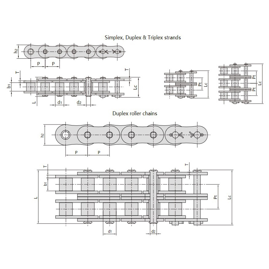 Standardabmessungen:Beibehaltung der gleichen parametrischen Abmessungen wie bei den Rollenketten der Heavy Duty-Serie für einfache Austauschbarkeit.