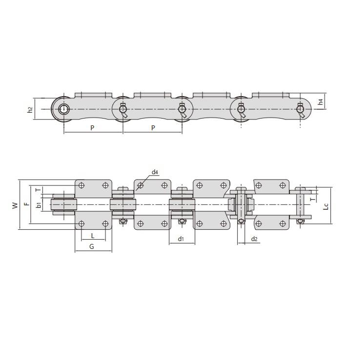 - Mehrreihige Kettenstruktur:Dieses auch als „Double Track Single Section“ bezeichnete Design spart im Vergleich zu herkömmlichen Ketten gleicher Spurweite fast ein Drittel Platz und verbessert gleichzeitig die Übertragungskapazität erheblich.